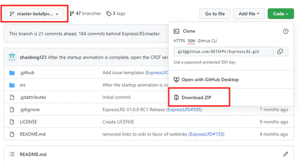 First, download the source code of master-betafpv-oled-menu branch to local from Github.
