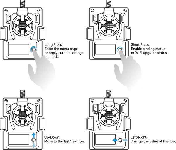 Note: All 5D button dimensions are available on BETAFPV ELRS V2.0.0 firmware. Please upgrade the firmware for new supports.