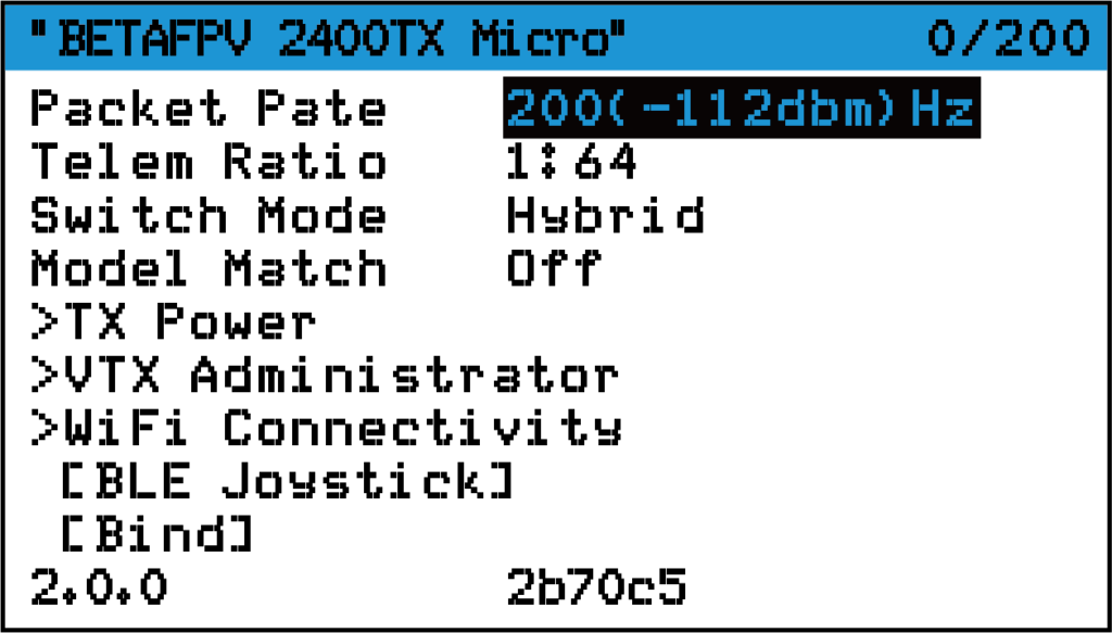 BETAFPV Micro TX Module ELRS V2.0.0 firmware is published. The firmware does not include the Binding Phrase. So please make sure the receiver works on officially major release V2.0.0 protocol and no Binding Phrase set.