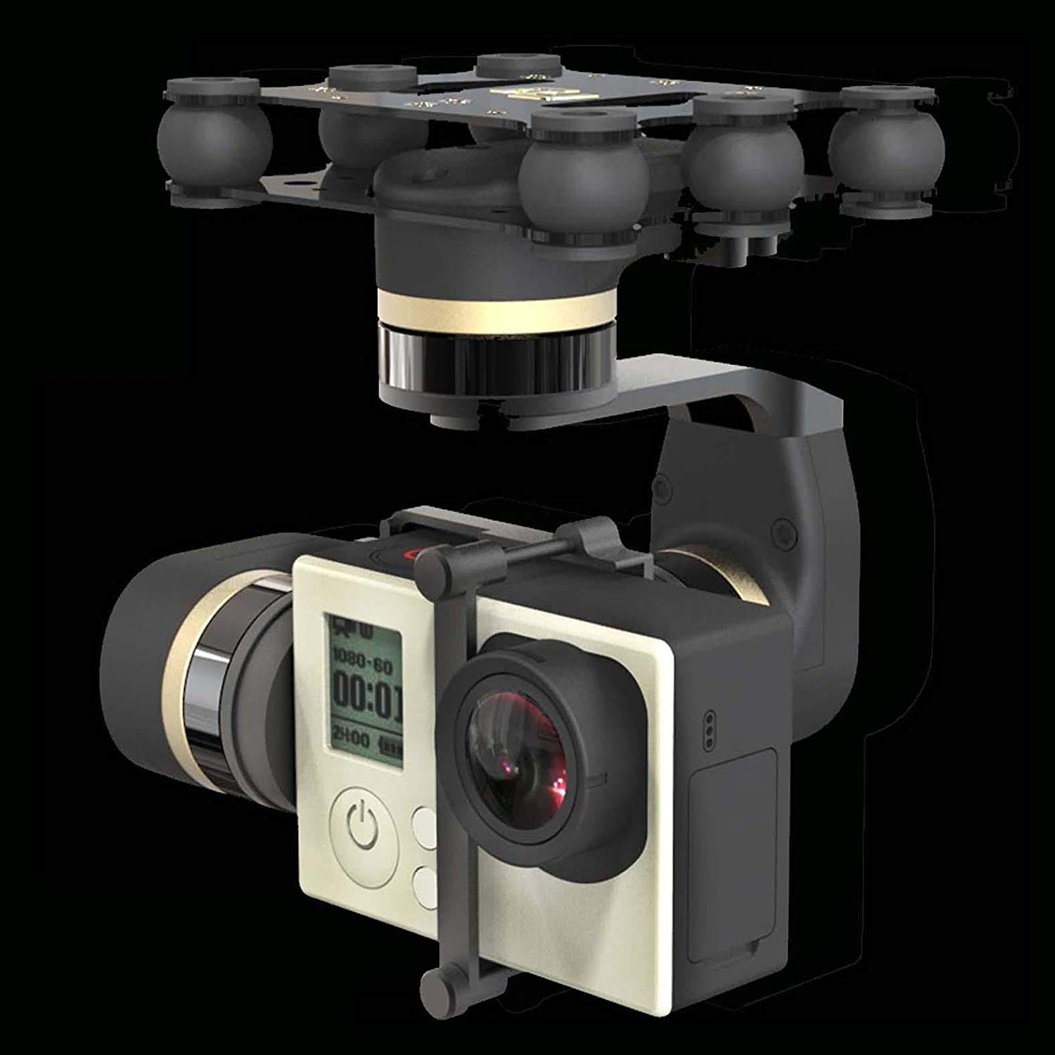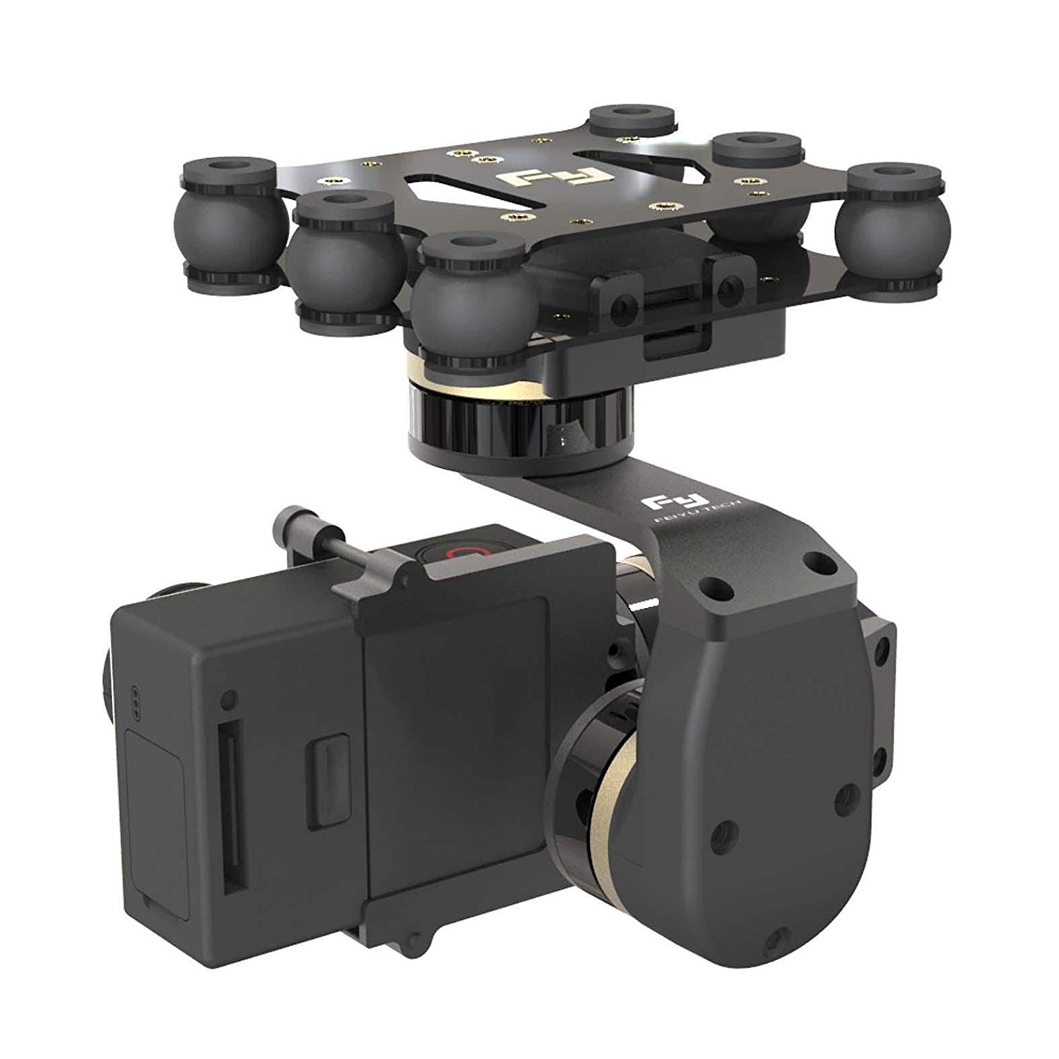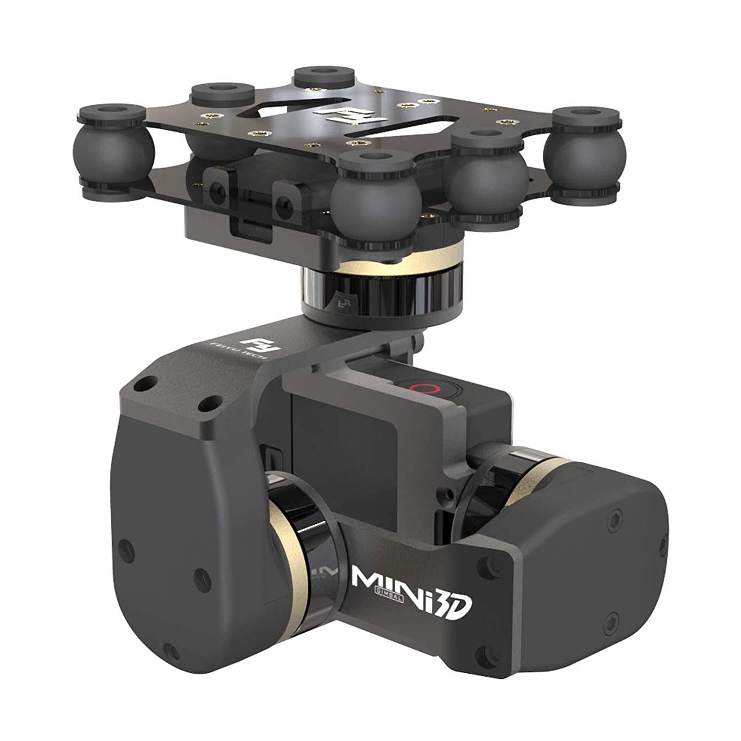 tyle:FY-M3D The Feiyu Mini 3DÂ 3-Axis Aircraft Gimbal supports GoPro HERO4, HERO3+, HERO3, or similarly-sized cameras. Capture incredibly smooth, stabilized first-person view (FPV) video and aerial photographs by mounting it to a fixed wing or multi-rotor RC aircraft. Its all new design makes assembly a breeze and with structural components made entirely of metal, its super durable, ensuring unhindered stabilization. By connecting the Gimbal to an RC receiver you can use a transmitter to switch between additional modes, as well as manually control pan and tilt. The Gimbal works independently of the aircraft, and only requires a separate power supply to keep your GoPro in a level position