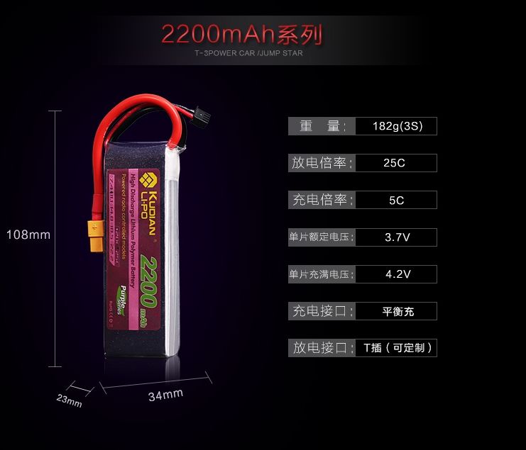 Item name: Kudian XT60 Plug 3S 11.1V 2200mAh 25C Battery