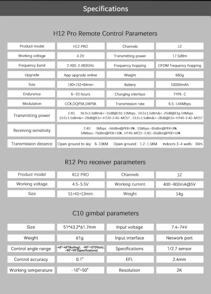 - Its compact and lightweight design makes the Skydroid H12 Pro portable, enabling users to easily transport it to different locations without hassle.