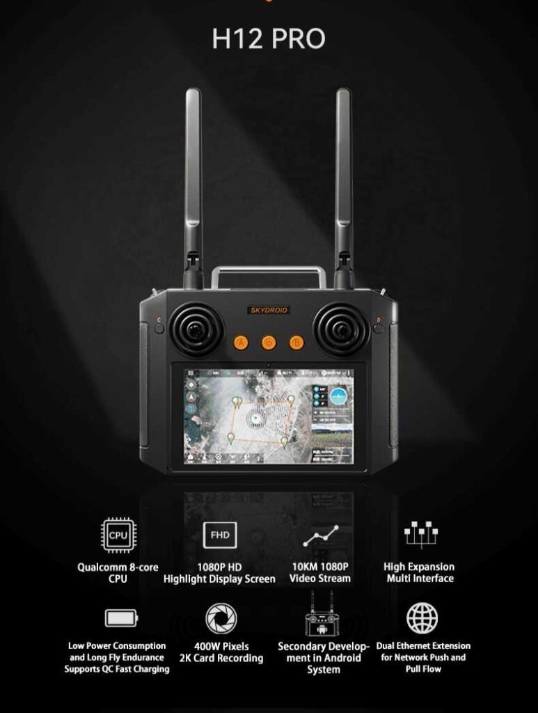 The Skydroid H12 Pro remote control features advanced wireless high-definition image transmission technology developed by Yunzhuo Technology.